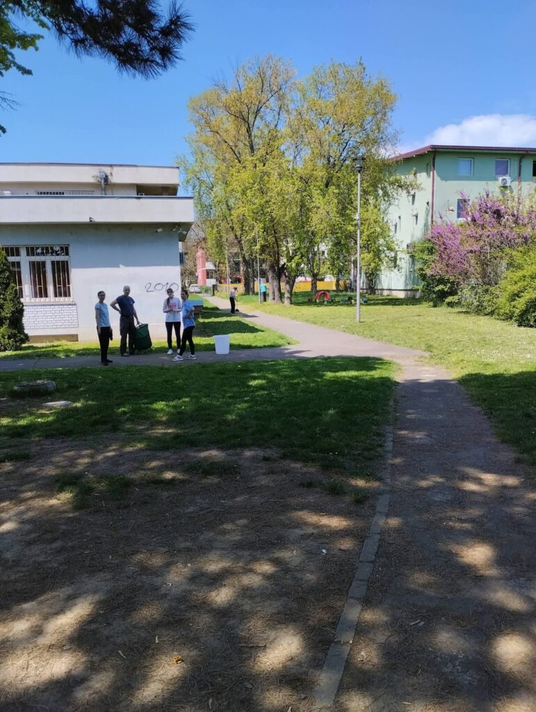 Posebna pažnja posvećena je uklanjanju korova i uređivanju zelenih površina kako bi dvorište bilo bezbednije i prijatnije za igru. Nakon nekoliko sati rada, prostor je dobio potpuno novi izgled – uredan, pregledan i spreman za dečju graju.